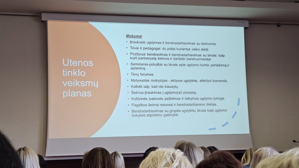 Lektorius pristatė praktinius būdus, padedančius stiprinti bendradarbiavimo ir pozityvaus bendravimo kultūrą ugdymo įstaigose. Dalyviai nagrinėjo, kaip kurti pasitikėjimu grįstus santykius, atpažinti ir valdyti konfliktines situacijas, o svarbiausia – kaip pozityvų bendravimą paversti kasdieniu įpročiu. Lektoriaus pasidalinta patirtis parodė, kad pozityvus tarpusavio supratimas ir efektyvus bendravimas yra būtina sėkmingo ugdymo proceso sąlyga. Dalyviai mokėsi šiuos principus taikyti tiek komandinėje veikloje, tiek bendraujant su vaikais ir jų tėveliais.